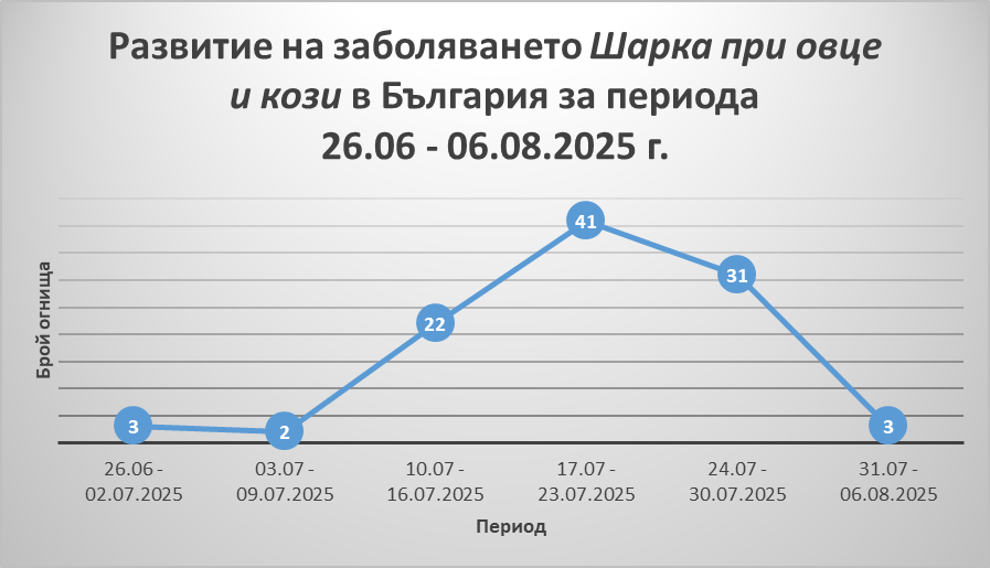 За периода 31.07. – 06.08.2025 г. по данни от информационната система за болестите по животните (ADIS) са регистрирани следните заболявания: